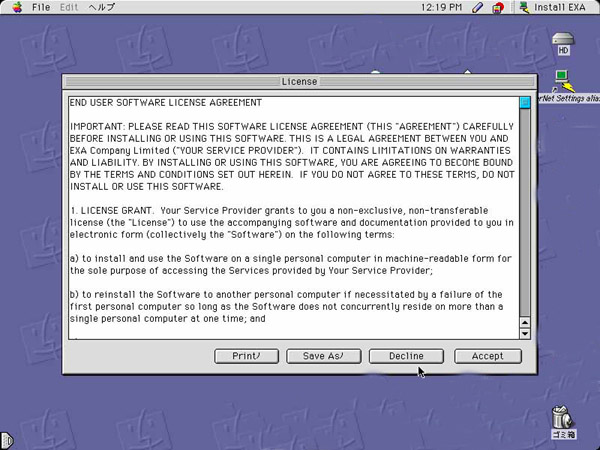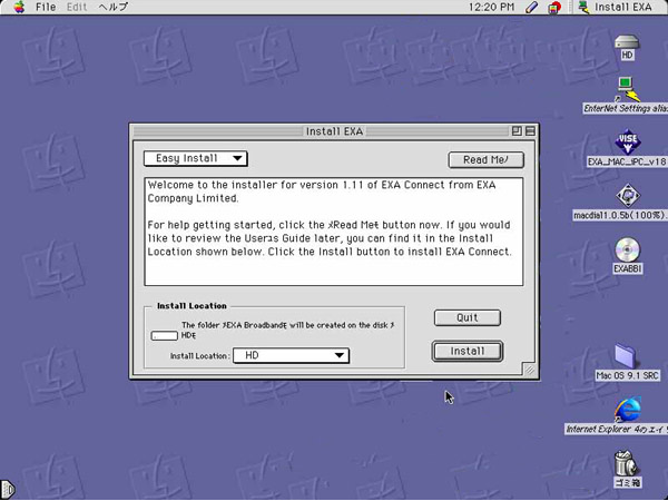 EXA Broadband internet」をクリックするとインストール作業が始まります。